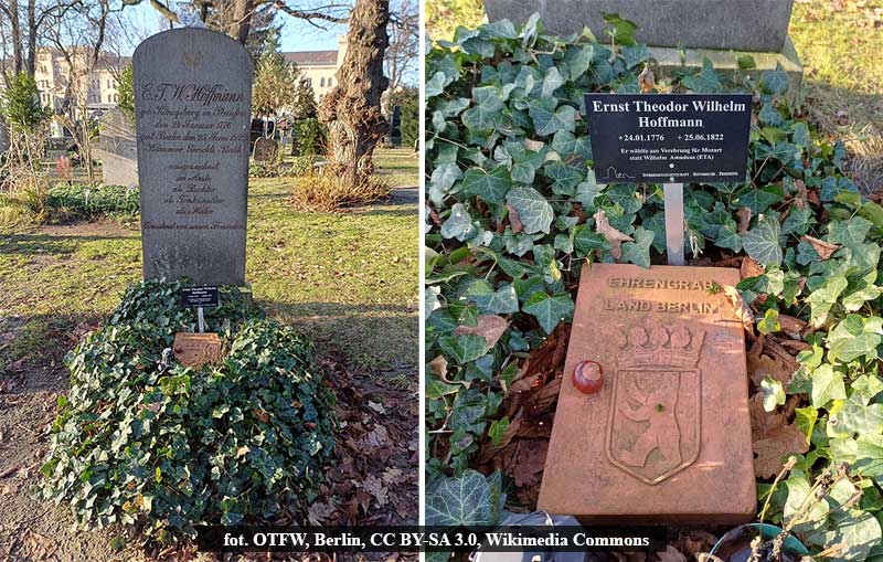 Ernst Theodor Amadeus Hoffmann zmarł 25 czerwca 1822 roku w Berlinie. Pochowany został na tamtejszym cmentarzu Friedhof III der Jerusalems und Neuen Kirchengemeinde w dzielnicy Kreuzberg.