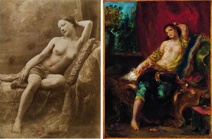 Nie wszyscy artyści widzieli w fotografii jedynie wroga. Wielu po czasie dostrzegło w niej sprzymierzeńca. Eugène Delacroix (1798-1863), czołowy malarz epoki romantycznej, regularnie korzystał z fotografii. Fotograf Eugène Durieu (1800-1874) zasłynął jako autor aktów właśnie dlatego, że pracował dla Delacroix. Wykonywał dla niego fotografie modeli, które służyły malarzowi jako podstawa do szkiców.
