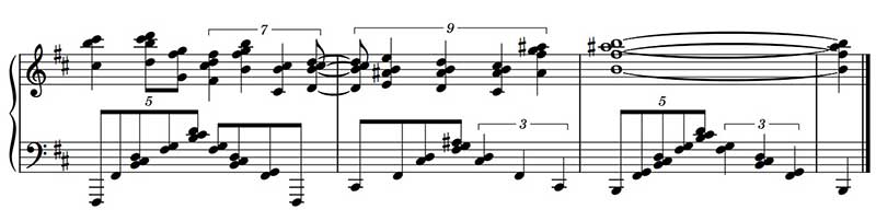 W 1928 r. powstał Koncert fortepianowy, który zabrzmiał po raz pierwszy dwa lata później w Hawanie. Utwór składa się trzech części: krótkiej Polyharmony, eksplorującej gęstą, mocno dysonansową harmonikę, rozbudowanej Tone Cluster, wykorzystującej obficie fortepianowe klastery i finałowego Counter Rhythm, w którym kompozytor nakłada na siebie różne warstwy rytmiczne.