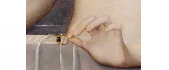 Ostatecznie król dopiął swego i markiza została jego kochanką. Obiecał jej nawet małżeństwo, czego symbolem jest pierścień, który kobieta na obrazie trzyma w lewej ręce. Król był wprawdzie żonaty z Małgorzatą de Valois, ale wymógł na niej zgodę na unieważnienie małżeństwa. Determinacja Henryka była na tyle duża, że stary mąż Gabrielle, ojciec czternaściorga dzieci, przyznał się do impotencji i małżeństwo markizy również anulowano.
