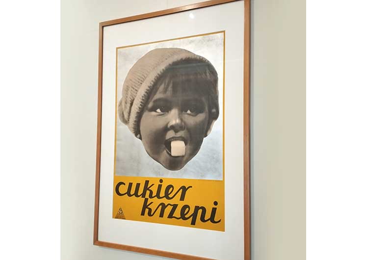 Jest też plakat ze słynnym hasłem „Cukier krzepi” stworzonym przez Melchiora Wańkowicza w 1931 roku na potrzeby Związku Cukrowników Polskich. „Ja dostałem, jak przypuszczam, najwyższe honorarium na świecie za dwa słowa, ‘Cukier krzepi’ – 5000 zł przedwojennych, czyli naówczas 500 również przedwojennych dolarów za słowo, tak cenne mogą być trafne słowa” – pisał dawno temu Wańkowicz. Tym razem pochylamy się jednak nad obrazem ilustrującym słowo – to głowa dziecka z kostką cukru w ustach. Plakat stworzyło w 1931 roku dwoje artystów – Stefan Plater-Zyberk i Maria Obrębska-Stieber.