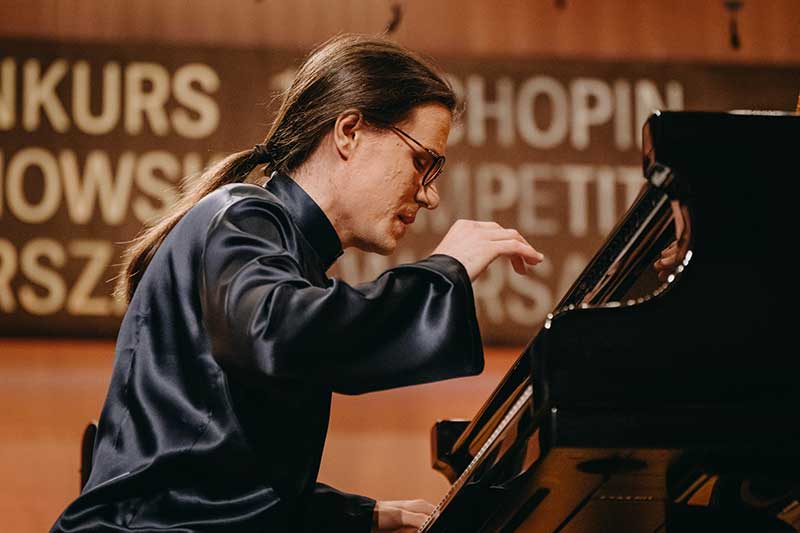 W bardzo przemyślany sposób podszedł też do wyboru instrumentu, na którym miał grać podczas Konkursu Chopinowskiego. Cztery lata temu, przed poprzednią edycją wydarzenia, w której również brał udział, miał z tym spory problem – wypróbowanie instrumentów w pośpiechu i pod presją czasu było praktycznie niemożliwe. Tym razem postanowił podejść do tej kwestii systemowo. Zrobił rozeznanie w salonach fortepianów poszczególnych marek jeszcze przed Konkursem, by zorientować się odpowiednio wcześnie, z którym instrumentem mu po drodze. Oczywiście nie miał do czynienia z konkretnymi modelami, jakie były dostępne w Filharmonii Narodowej, ale mógł poczuć specyfikę brzmień fortepianów produkowanych przez poszczególne firmy. Ostatecznie zdecydował się na markę Fazioli, która – jak podkreśla – dzięki perlistemu górnemu rejestrowi pozwala z łatwością zachować śpiewność fraz.